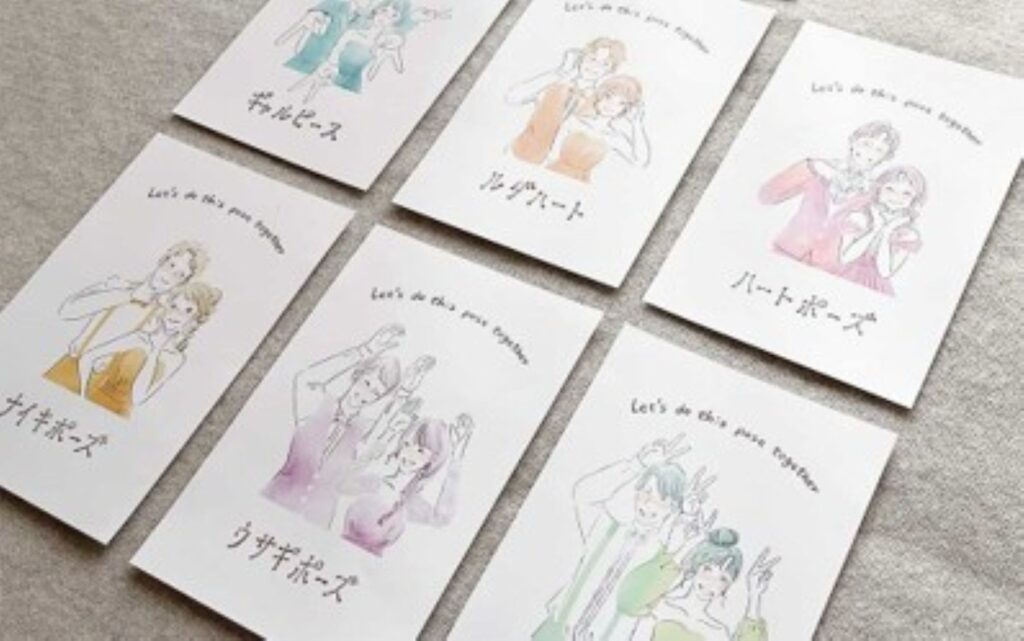 ポーズカードやフレームなどを使って「ちょっと遊び心」を混ぜる演出も人気です。ゲストが好きな小道具を選びながら撮る写真は、オシャレでかわいくて、SNS映えも◎。「自然な笑顔×楽しい小物」、最高の組み合わせですね!