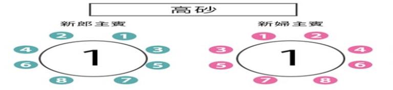 青の①が新郎側の上座→一番役職が高い人