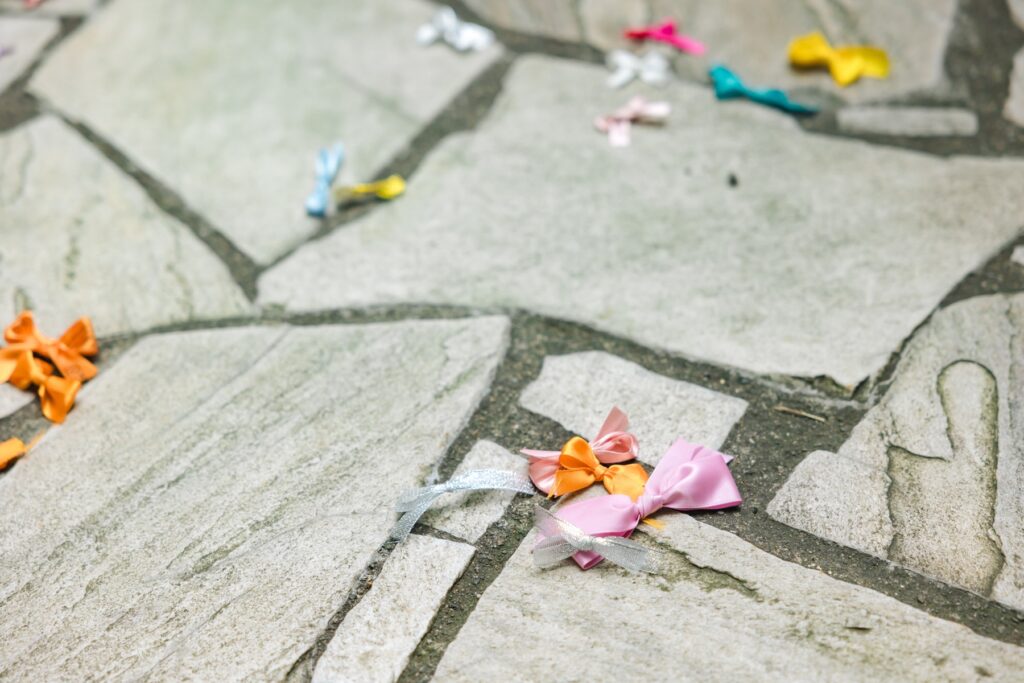 カラフルなリボンが風に舞い、おふたりの笑顔がより一層輝きます。
