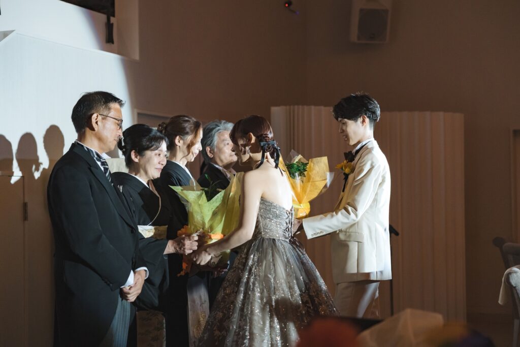 披露宴の結びには、これまでの感謝を込めて親御様へ記念品を贈呈。