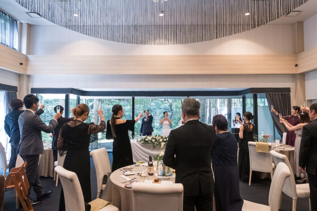 その想いに応えるように、新郎様からの乾杯の音頭で祝宴がスタート。笑顔と歓声が会場を包み込み、これから始まる温かいひとときへの期待が高まる瞬間となりました。