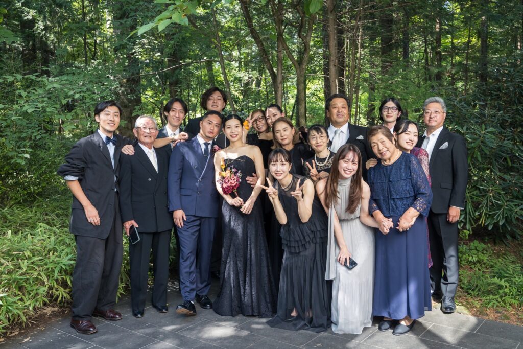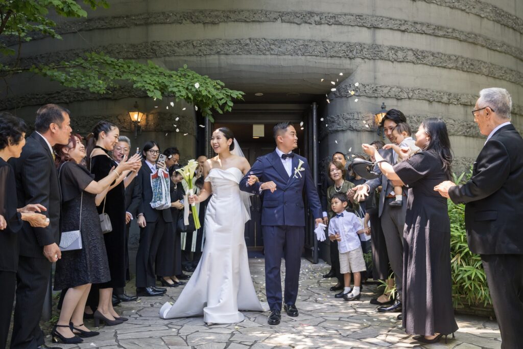 ふたりを囲むご家族やゲストの笑顔と歓声が、アットホームな雰囲気をより一層引き立てます。花びらが舞う中、自然と笑顔がこぼれ、温かく幸せな時間が流れました。