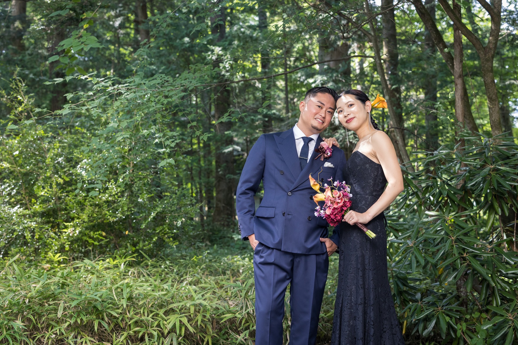 ガーデンでのフォトタイムでは、自然光に映えるおふたりの姿が印象的でした。