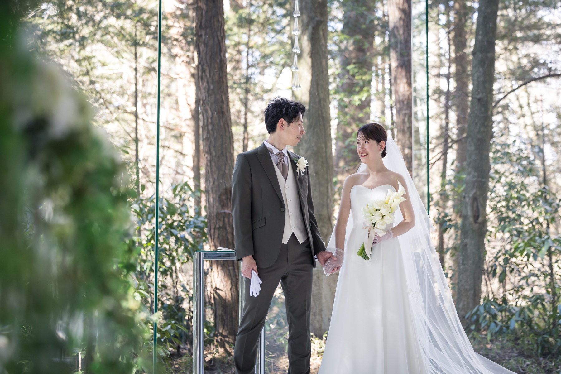 お支度を整えたおふたりが、まずチャペルで行ったのはご家族とのファミリーミート。これまで大切に育ててくれた親御様へ、結婚式という特別な一日の始まりに感謝の気持ちを伝えます。扉が開いた瞬間、晴れ姿を見た親御様の表情は驚きと喜びに包まれ、思わず笑顔と涙がこぼれる温かなひとときに。これまでの思い出を振り返りながら交わした言葉やハグは、これから始まる一日をより特別なものにしてくれました。