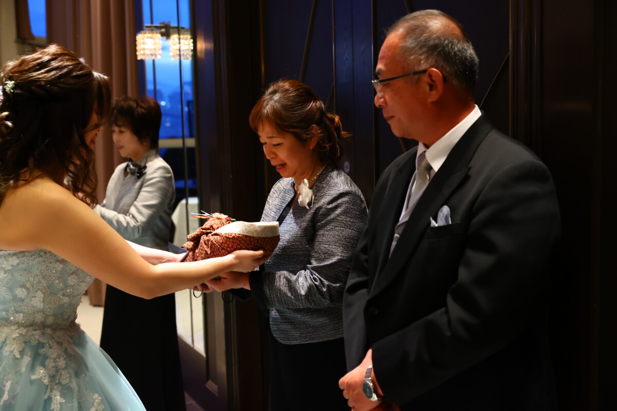 披露宴の結びのシーンで親御様に感謝の気持ちをこめてお送りする贈呈品