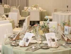 結婚式場の壁を塗り替えることはできない為、見学時にイメージカラーとの相性をイメージしておくことが大切です。多くの式場は白基調なので、テーブルクロスや装花でカラーを演出します。
