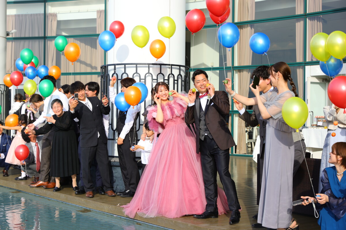 せっかくなら、おふたりらしい演出を取り入れて、ゲストの心にも残る時間にしたいですよね。ここでは定番のフラワーシャワーやブーケトスはもちろん、サッカーボールトスなど個性が光る演出アイディアまで先輩カップルの実例と共にご紹介いたします。演出を選ぶ際のポイントや注意点も解説していきます。