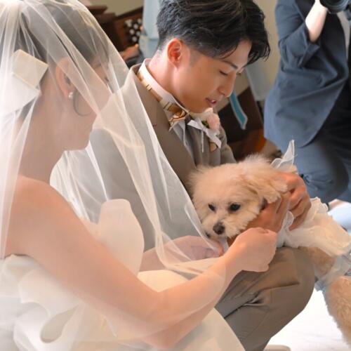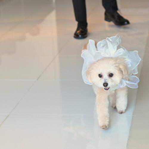 - 挙式ではわんちゃんがリングドックとして登場。