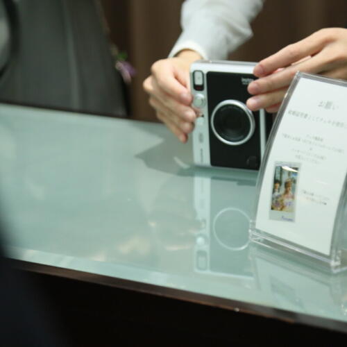 - 結婚証明書はチェキで撮影した写真を使ったオリジナルを用意。ゲストの皆様が撮影したチェキを飾りメッセージを書き添えて完成させていきます。集まった写真はおふたりを祝福するたくさんの笑顔が。世界に一つだけの結婚証明書はゲストとの大切な思い出がぎゅっと詰まった特別な宝物となりました。
