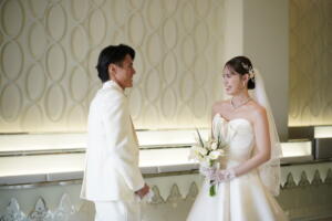 当館のチャペルは白基調でご新郎ご新婦様のお衣装がとても映え