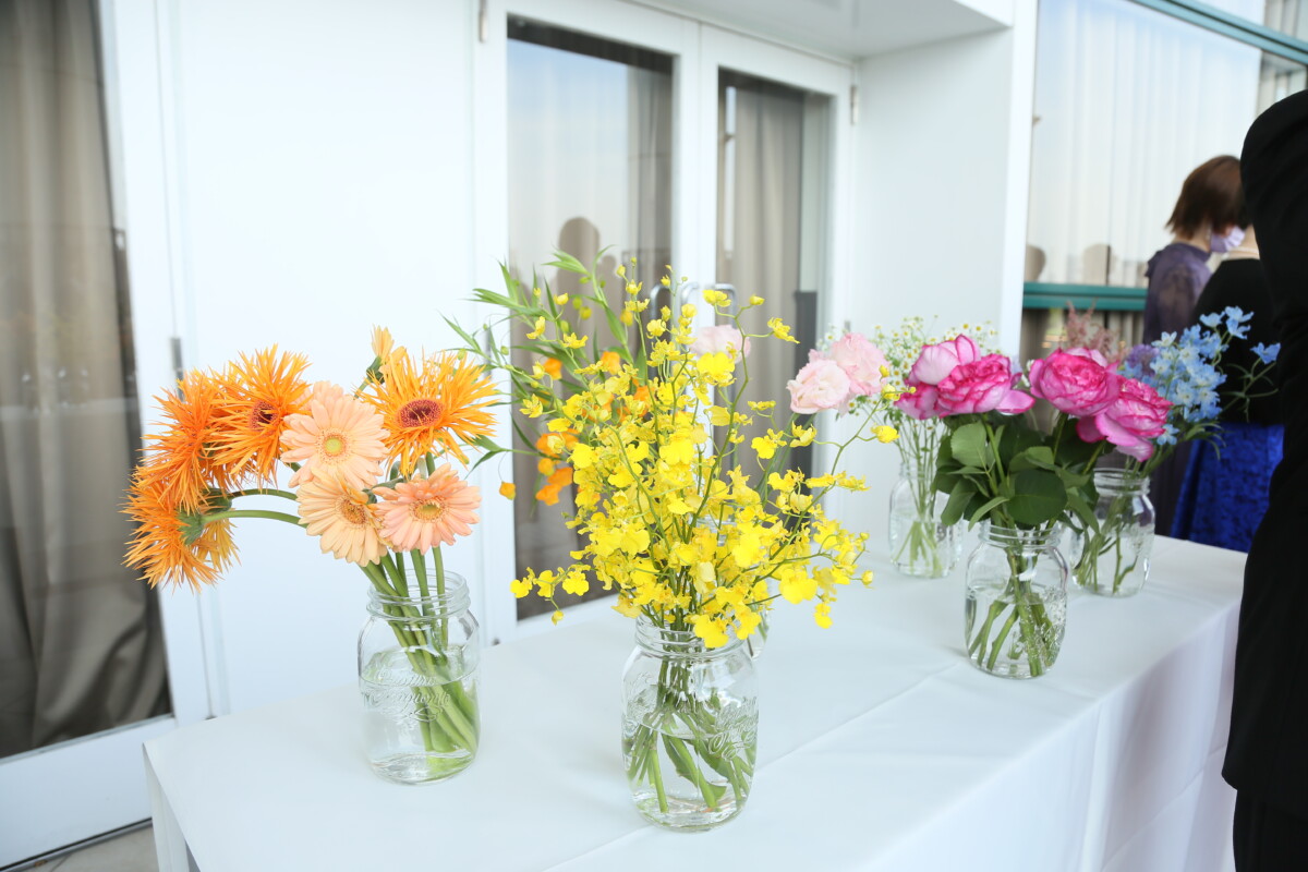 ゲストテーブル上に置くお花をゲスト自身に選んでいただき