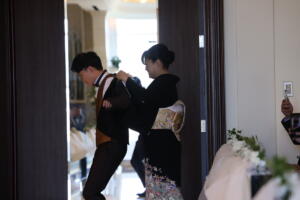 新郎様がタキシードのジャケットを親御様から着せてもらう演出のこと