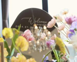 お花を添えるだけで、空間がぐっと華やかになり、結婚式の第一印象を素敵に