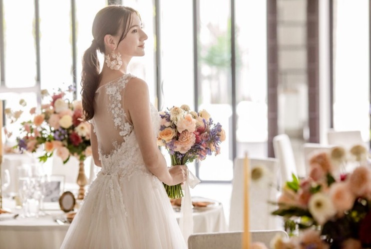 〜気になる部分をきれいにカバーするコツ〜 ウェディングドレスは、シルエットやデザインによって 体型の見え方が大きく変わります。 「二の腕が気になる」「背中をすっきり見せたい」など お悩みに合わせてドレスを選ぶことで、 より自信を持って当日を迎えることができます。 ここでは、よくある体型のお悩み別に おすすめのドレスデザインをご紹介します。 二の腕が気になる花…