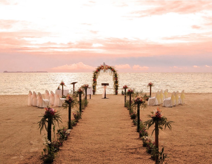 バージンロードとは、チャペル入り口から祭壇へと続く神聖な通路のことで、花嫁の歩みを象徴しています。 歩く一歩一歩には、「過去(誕生からこれまで)」「現在(新郎との出会い)」「未来(ふたりの人生)」 という意味合いが込められています。 また、古くからの言い伝えでは、幸せな花嫁を悪い物から守る為の“魔除け”や“お清め”の意味合いも持つと されており、その為白い布…