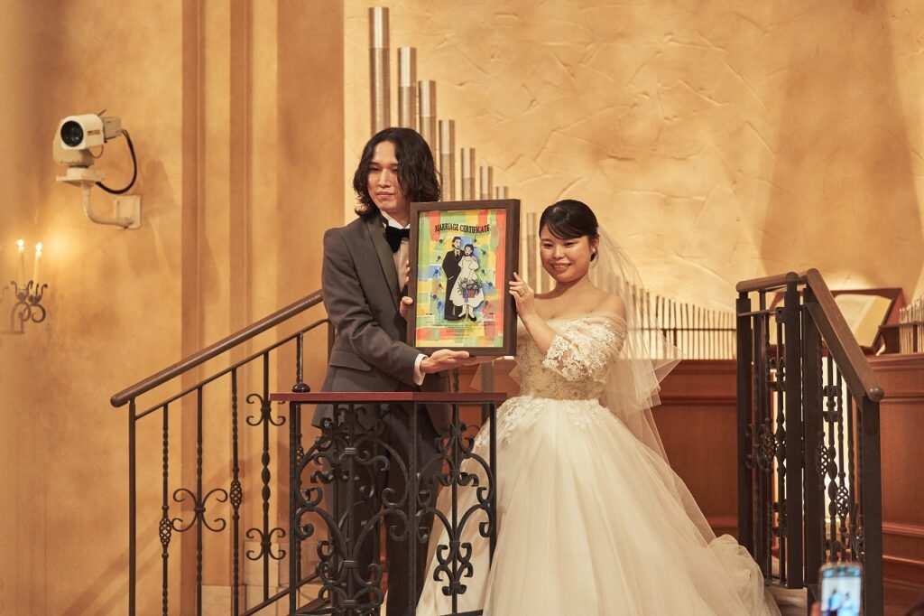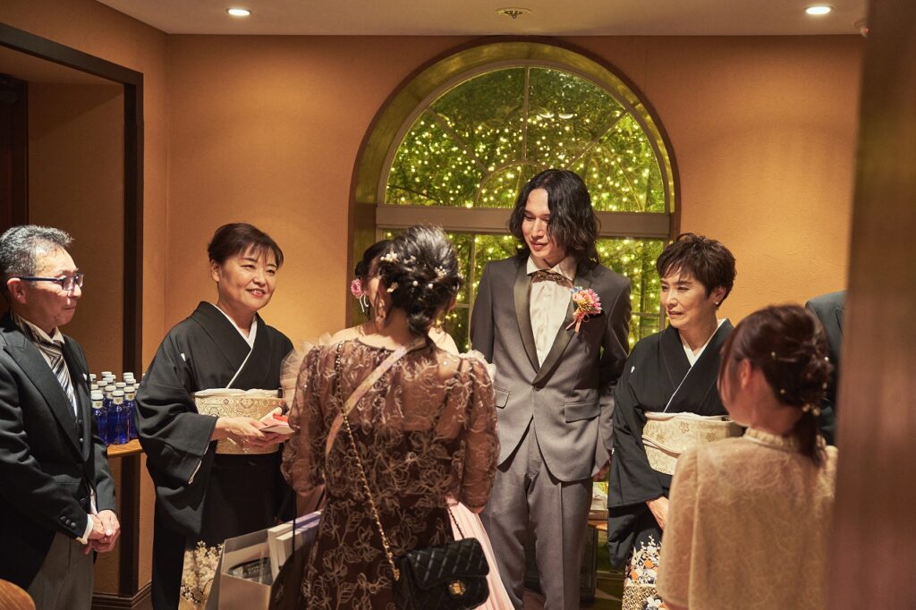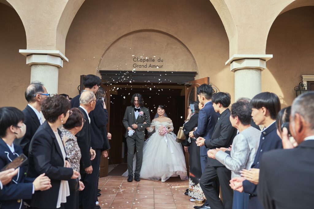 大切な家族や友人に見守られながら進む人前式。おふたりが選んだ言葉や進行で、等身大の想いをまっすぐに伝えられる時間です。ゲストの賛同の拍手が、そのまま結婚の証となり、会場全体がやさしい空気に包まれました。「おめでとう」の声が自然と溢れ、笑顔と感動が広がる、あたたかな誓いのセレモニーとなりました。