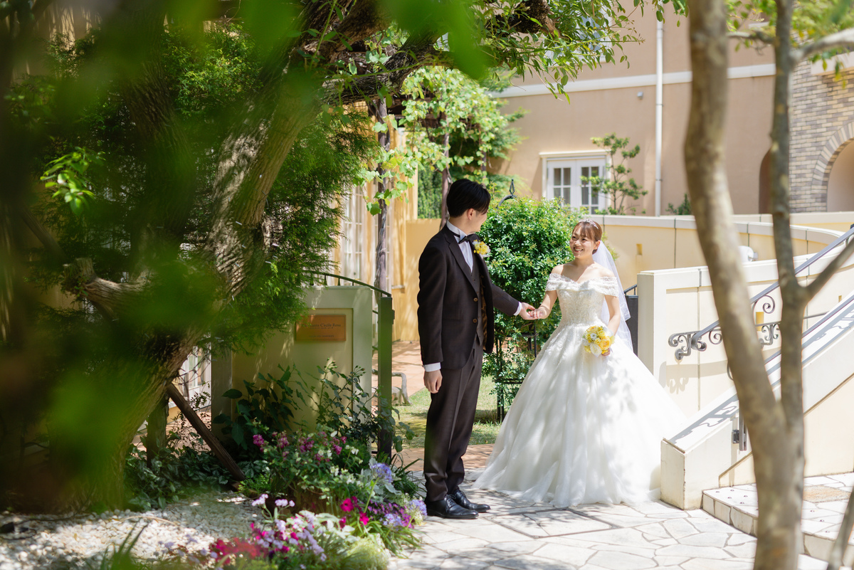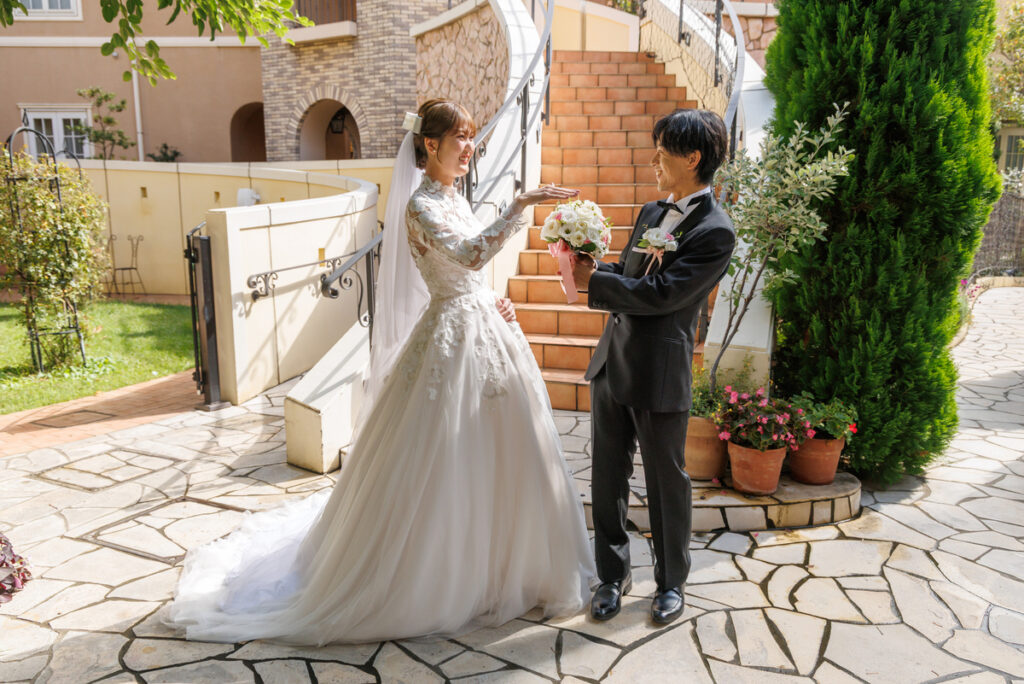 結婚式のはじまりに、おふたりだけで想いを確かめ合うファーストミートの時間。扉が開いた瞬間、自然とこぼれた笑顔や涙は、今日までの歩みを物語っていました。「よろしくね」「ありがとう」そんな言葉がそっと交わされ、心が寄り添う特別なひとときに。緊張がふっとほどけ、あたたかな気持ちで一日がスタートしました。