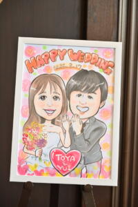 お2人の思い出の写真や似顔絵も飾っております!