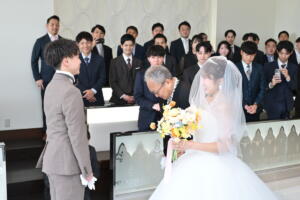 新婦様のエスコート役が新郎様へ引き継がれる瞬間は
