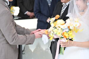 「結びを固める」というイメージで新婦様の手を包み込むことで